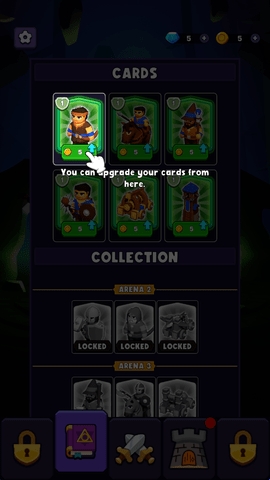 3、完成基础任务后,玩家解锁卡牌手牌系统,可同时持有5张卡,需合理管理手牌数量与费用。
