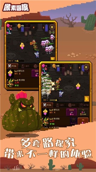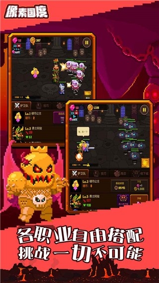 1、经典像素风格,招募护卫队保护公主前往地下城挑战魔王。