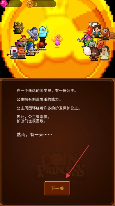 2、阅读剧情后,点击【下一关】推进故事,进入游戏关卡。