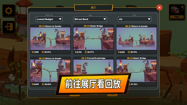 展示比讲述更有效。预建造材料可以在关卡中加载,为你提供帮助或克服其他障碍。围绕它们开展建造,或将其融入你的桥梁设计之中。