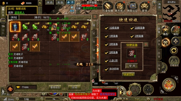 1、上线领取终身福利,神魔幻化属性倍增,打宝无限回收。