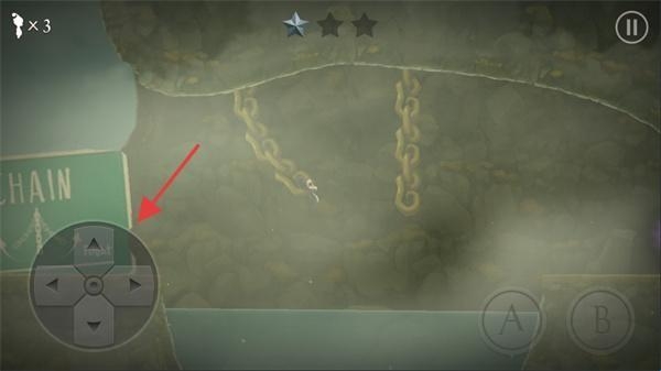 2、进入场景后,通过屏幕左下角的虚拟方向键控制角色移动,跨越如链条区域等障碍。