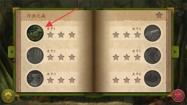 1、在游戏关卡选择界面,点击“污浊之森”下的【关卡1】,进入游戏场景。
