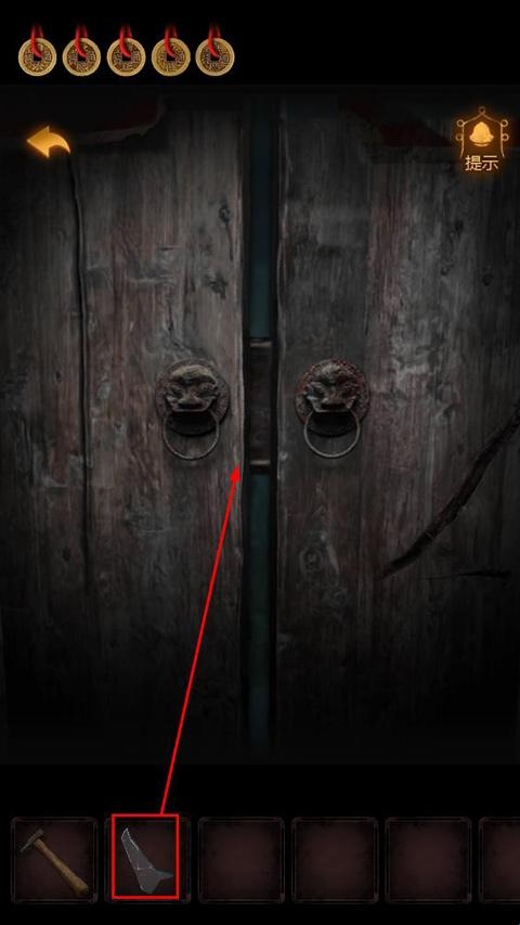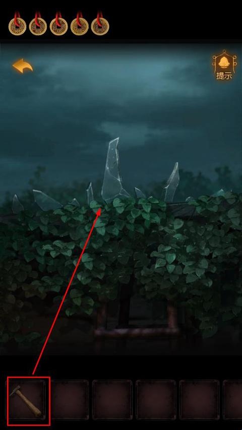 4、点击梯子上的院墙,使用【锤子】将玻璃击碎,活动【玻璃碎片】。