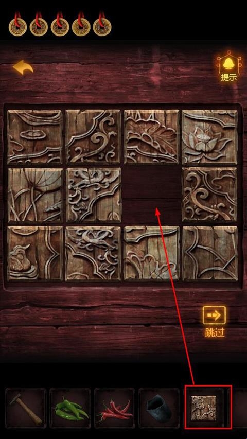 22、返回老道士场景,查看树上的图案,记住箭头的方向顺序。