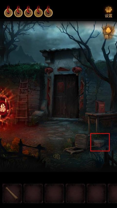 15、对照灯笼上的图案,打开右边桌子上的小盒子,获得【金属手镯】。