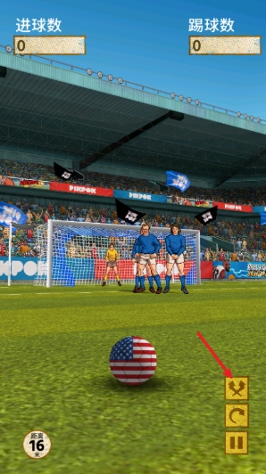 1、进入之后,左下角可以查看拿到射击距离,拖动足球即可射门。