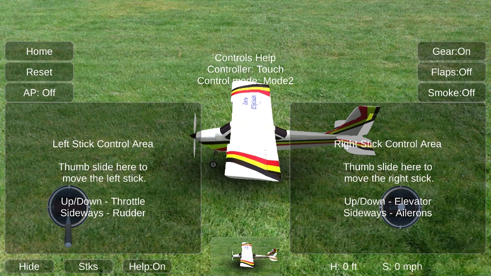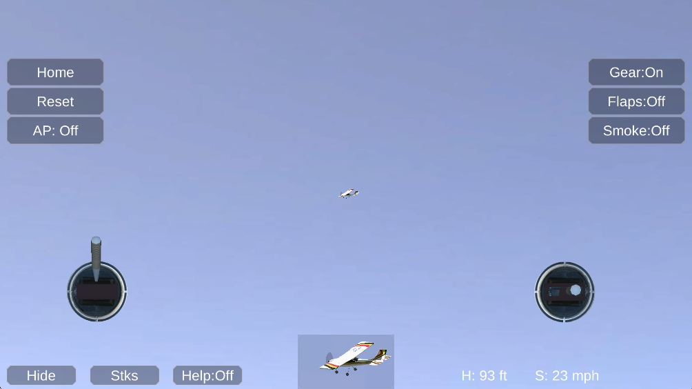 2、进入游戏后,左下角按钮控制飞机前进的方向和轨迹,右下角按钮控制上升高度等。