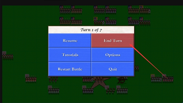 4、当我方兵种全部移动完成后,点击“EndTurn”即可结束本轮,然后轮到AI进行操作。