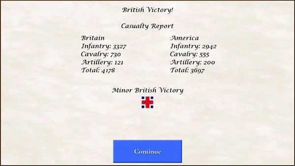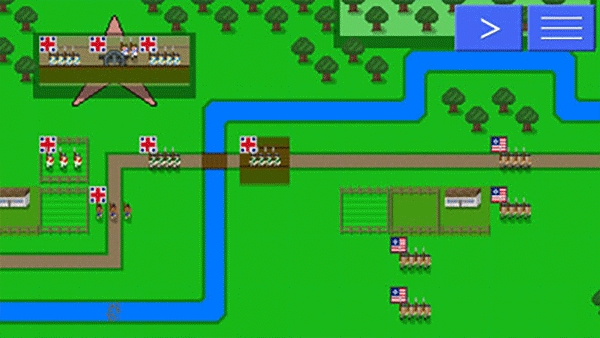 2、萨拉托加战役分为两国,玩家将控制英方军队对战美军,点击兵种再点击目标位置可以进行移动。