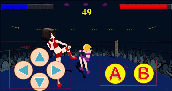 2、格斗的过程中,玩家可以使用左边的按钮进行移动,点击右边的按钮进行攻击。