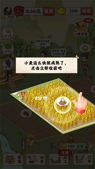 1、首先进入田园人家红包版,点击粮食地,播种小麦。
