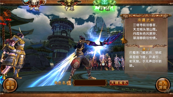 卧虎藏龙是一款以武侠小说为题材设计的角色扮演类游戏,运用3D引擎技术全面打造,内含独特的轻功系统,让玩家可以在游戏中体验飞檐走壁的侠客之旅。此外,玩家不仅可以去往各个门派学习独门秘籍,还可以自由创造武功招式,让你称霸武林。