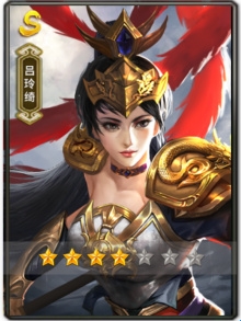 吕玲绮:温侯之女,继承其父的部分能力,输出能力很强,对男性武将的杀伤极强。辅助性猛将,对男性武将的杀伤力极大,七星技能造成群体眩晕效果,极大利于我方输出武将,趁虚而入至内部给敌人造成很大的伤害。