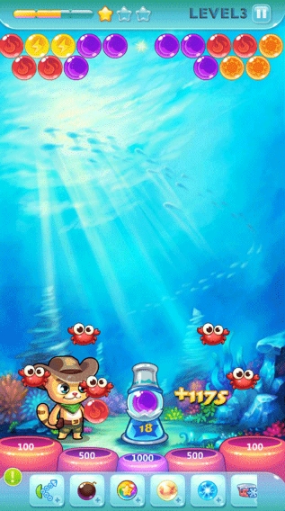 4、当泡泡掉落在下方的罐子里,得分就会更高。
