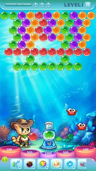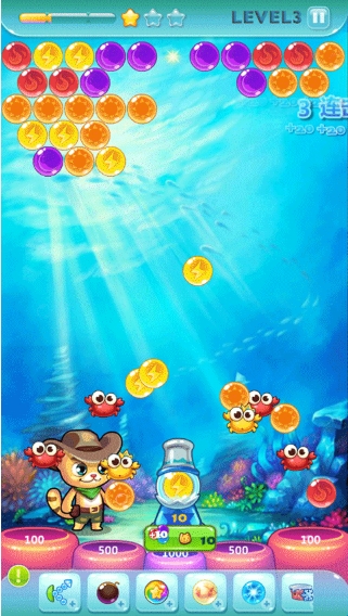 开心泡泡猫是一款超级治愈的休闲益智类游戏,以卡通动画风格为游戏背景,运用泡泡龙经典玩法为核心,让玩家在游戏中获得治愈。在游戏中,玩家需要操纵自己的炮台发射不同颜色的炮珠射击到相同颜色的炮弹上进行消除,完成任务积分即可闯关成功,适合用来打发休闲娱乐时光。