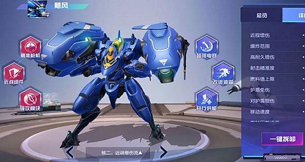 2、在一开始进行机甲选择的时候,推荐新手玩家选择审判,这款机甲综合素质更高,操作更简单,适合中远距离作战,这里提醒一下大家,在机甲的战斗场地内是有湖泊的,机甲的驾驶形态或者玩家使用滑板都可以在水上行走,但如果处于攻击状态,玩家的机甲会下沉到水底,不能攻击。