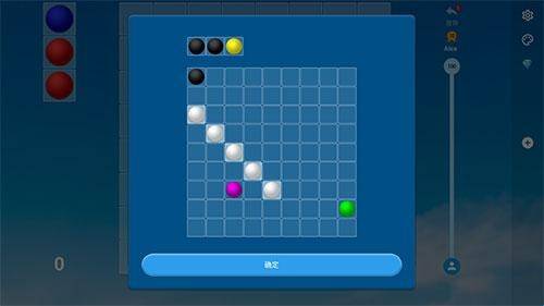 4、棋盘上将随机产生3个新的彩球当整个棋盘满后,游戏结束。