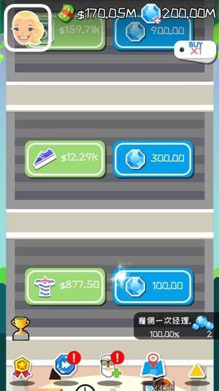 2、针对玩家已有的商业版块,你可以追加等级的提升,提升过后的商铺会为你带来更高的资金收益,同时雇佣新的管理员,便可免去玩家的操作,自动放置便可收获大量金钱。