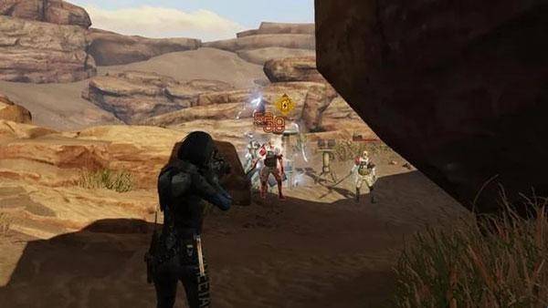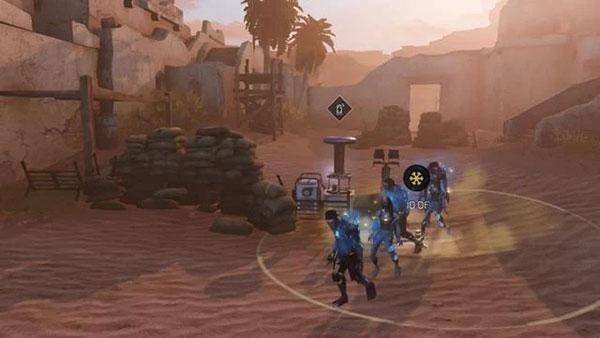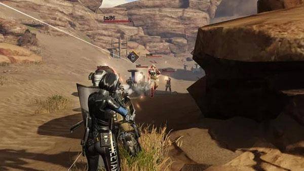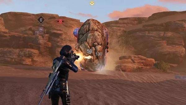 5、这个时候要注意利用地形,寻找到适合躲避的位置来避开BOSS的攻击。在躲避BOSS的时候要注意对应的山头,等到对应山头的电路组件在麻痹BOSS之后,BOSS就会返回戈壁谷底,这时候团队的队员集中火力进行攻击便可以了。