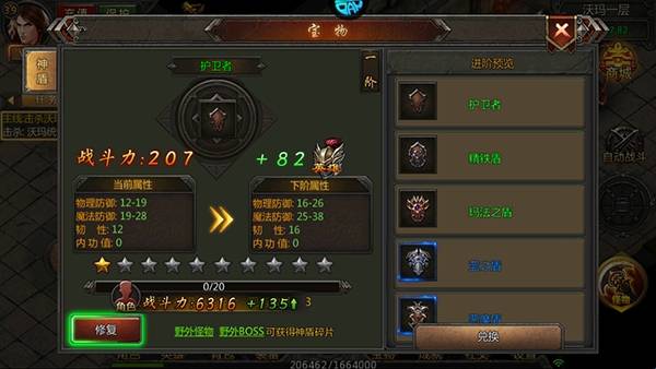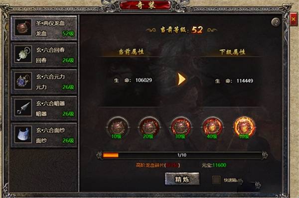 游戏中一共用有5种奇装,每种奇装提供不同的属性。玩家需要消耗对应的奇装材料来升级奇装,提升自己的战力。