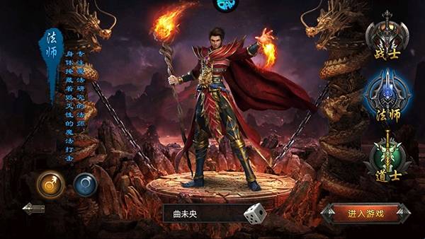 1、进入游戏从战士、法师、道士三大职业当中选择一个职业。
