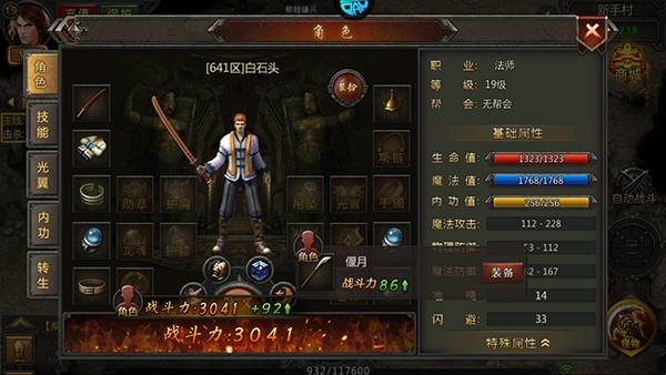 2、点击角色可以看到当前角色属性、穿戴装备等信息。