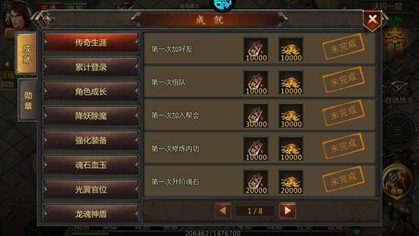 5、升级成就可以获得大幅度属性提升,提高战斗力。
