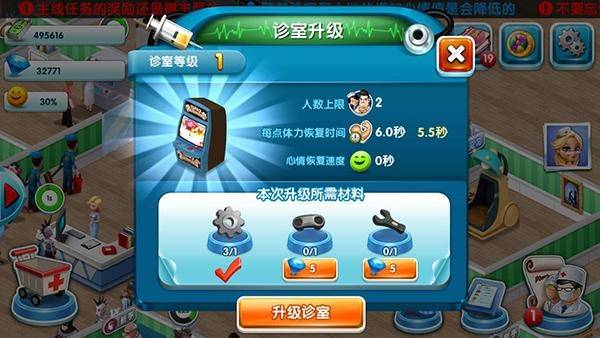 1、建设医疗设施:玩家需要根据不同的需求,建造不同类型的医疗设施。合理规划医院的布局,提高工作效率,为患者提供更好的医疗服务。