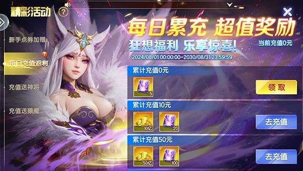 3、同时游戏内还有着大量充值返利活动,让你花更少的钱享受更多的优惠。