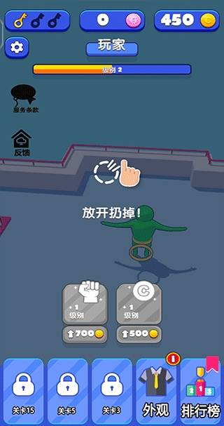 3、游戏中你需要打倒敌方人物,然后拖拽它将它丢出去(拖拽它之后可以多转几圈利用惯性将它丢出去哦)。