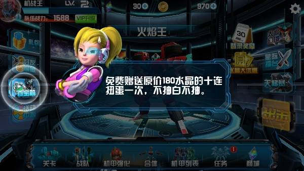 4、过掉第一关后可以到游戏大厅点击百宝箱免费抽取扭蛋啦。