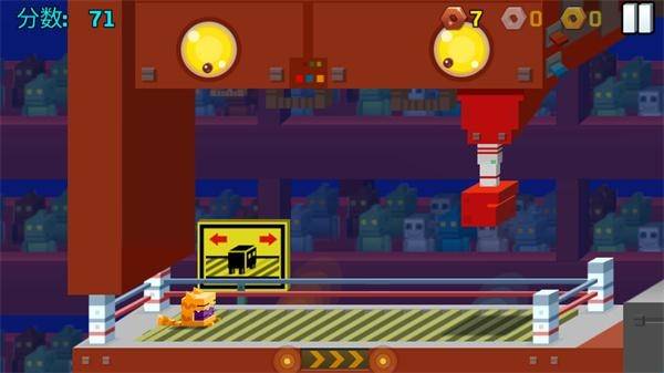 1、无论是点击屏幕控制传送带的左右方向躲避下落拳头的重拳出击。