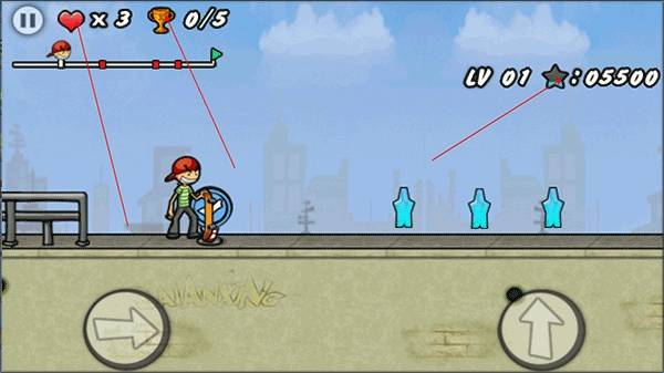 2、让人惊叹的滑板方式你可以随心的发挥,加入了生存的模式挑战。