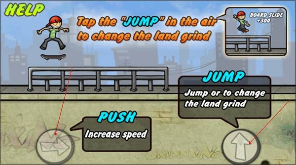 1、下载安装好滑板小子,进入游戏,左边的方向键可以控制速度,右边的可以控制跳跃。