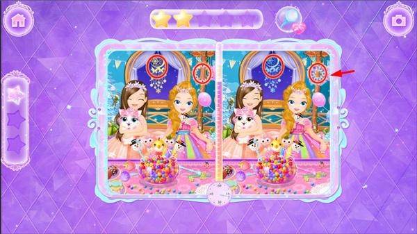 1、玩家打开莉比小公主的疯狂派对夜游戏,进入游戏页面,游戏主页面有各种不同的小游戏,玩家打开找茬游戏。