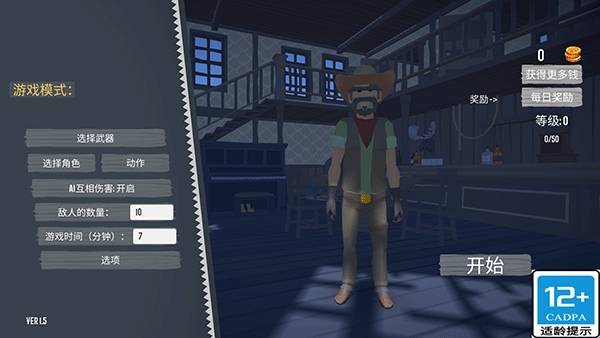 1、首先打开你的游戏来到首页,可以选择你的武器,角色,并且可以设置敌人数量以及游戏时长;