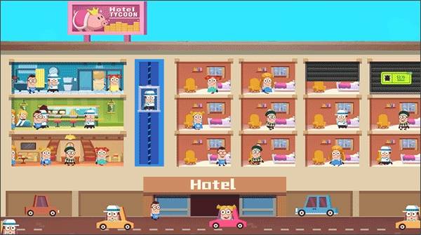 酒店大亨是一款模拟经营类手游。游戏中采用了清新简约的画风,玩家将扮演一名酒店的老板,需要经营一家酒店。玩家可以对自己的酒店做出各种调整,用来吸引更多的顾客前来,初始酒店中的房间数量很少,玩家可以通过经营获取利润后解锁房间,让玩家能够同时接待更多的顾客前来,慢慢发展,直到最后成为酒店大亨!