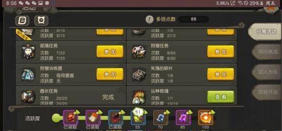 部落任务很容易完成我就不多说了,一周左右就可以全部完成500金贝。