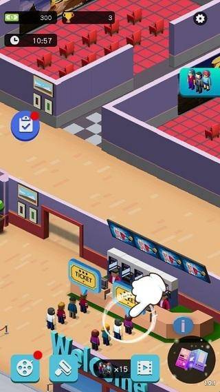 一款模拟经营类手游——空闲电影大亨。在该游戏中玩家将拥有一家电影院,需要经验电影院维持它的运营。玩家可以通过引进热门电影来吸引顾客前来,还可以在电影院中修建各种必要场所,如便利店、卫生间等等,同时影院房间一定要经常维护,让顾客能够拥有良好的观影体验。