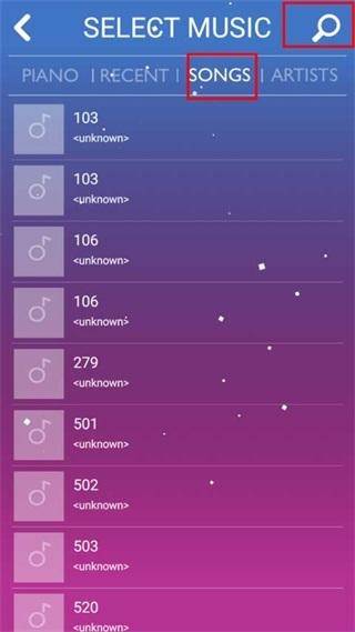 4、玩家还可以通过搜索按钮来将手机里已下载好的MP3音频文件缓存到游戏里开始闯关。