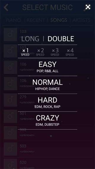 5、只需要根据歌曲的难易程度来决定玩家想要体验哪种模式。
