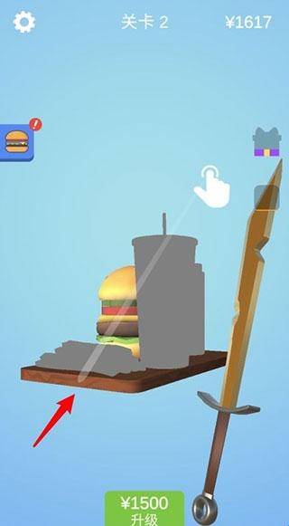 6、完成后,使用制作的宝剑,切下页面的汉堡。
