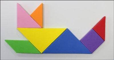 1、得出一个物件的轮廊,随后用七个固定不动的简单图形根据转动视角、挪动部位等实际操作来拼接出这一物件。