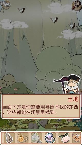 2、画面下方是你需要用寻妖术找的东西,这些都能在场景里找到。
