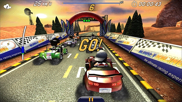 2、想必玩过跑跑卡丁车、马里奥赛车游戏的玩家都会熟悉卡丁车大乱斗这么个模式吧,游戏中所有猴子的赛车速度都是一样的,想要超车的方法只有将对手的车挤出赛道,不过这种方式也会影响自己赛车的速度反而给其他对手超车的机会,又或者在途中拾取各种道具将对手打飞。