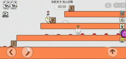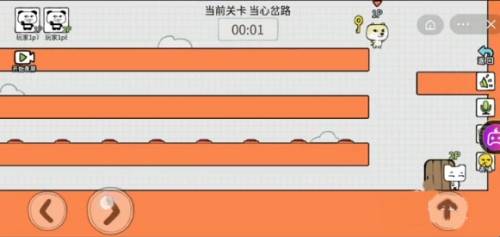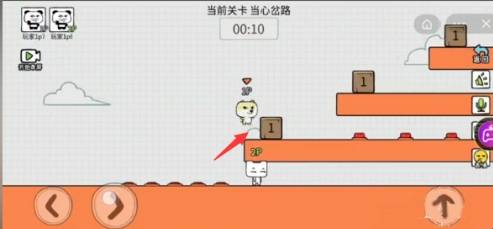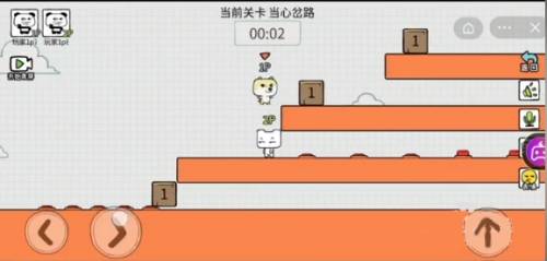 3、然后继续刚才的操作,玩家跳到第三层,另一名玩家留在第二层。(踩虹色按钮增加时间)