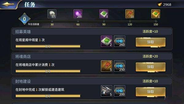 目前游戏内获取主公经验的方式有:主线剧情任务,每日任务,封地建筑升级,演武场