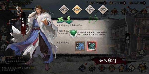 4、白驼山自然就是西毒欧阳锋的宗门了,其特性在于比较突出的防御能力,而且宗门宝物碧蛇王鼎不仅可以提供血量加成,还可以降低受到的伤害以及提升护甲。