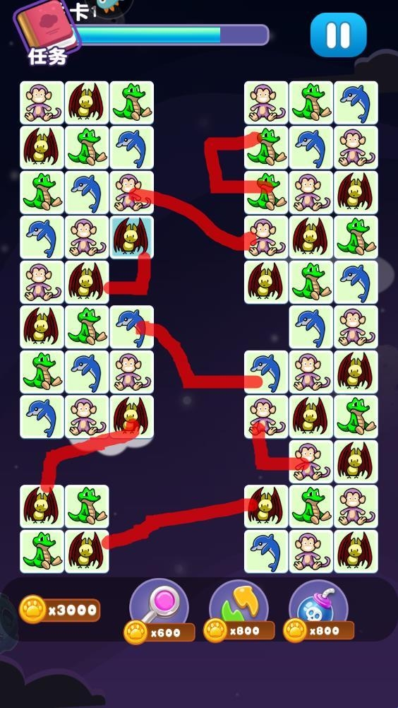 乐游连连看(原名:我要连连看)是一款好玩又有趣的休闲益智类游戏,采用卡通动画风格设计,内含挑战模式、无限模式、防御模式等多种不同玩法模式,拥有成百上千的闯关关卡,在游戏中,玩家主要通过连接长相一样且形态一致动物进行消除,全部消除既闯关成功,快来挑战试试吧!